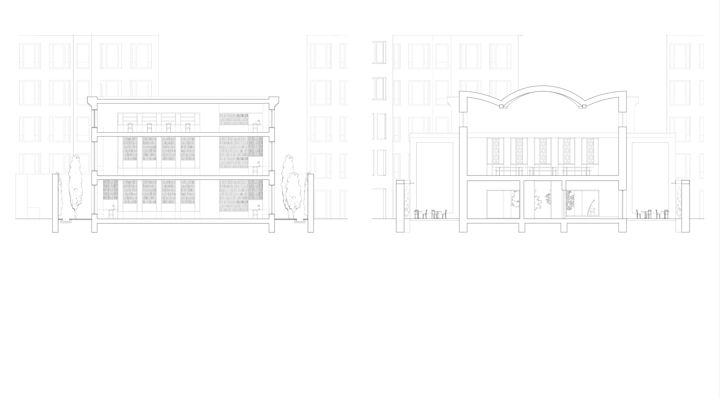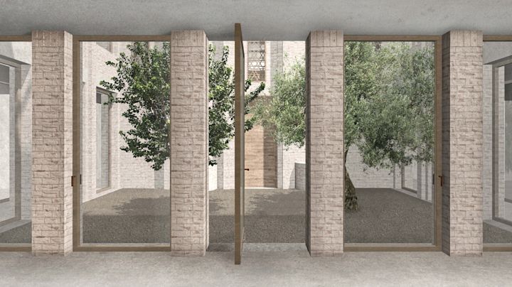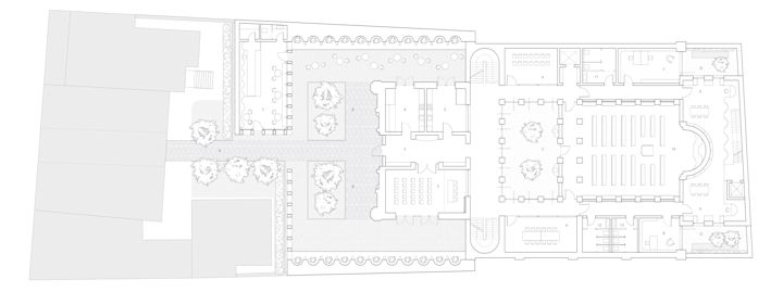 Der Entwurf entwickelt in der recht dichten Hinterhofsituation ein differenziertes Raumgefüge, welches das Thema des Gartens und seiner atmosphärischen Potentiale bei der Entwicklung wechselseitig mit einschließt. Neu gesetzte Bauteile entwickeln zusammen mit dem Bestand eine räumliche Sequenz, strukturieren den Raum, rahmen und schützen diesen. Das Herz des Hauptgebäudes bildet auf dem Abdruck des alten Tempels der Gebetsraum. Dieser bezieht seine Kraft aus einer räumlichen Vielschichtigkeit im Zusammenspiel mit den verschiedenartigen Gärten, jeweils an den Stellen, an denen sich der kontemplative Raum öffnet und sich so mit der Umgebung atmosphärisch verbindet.
