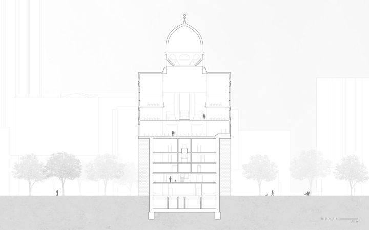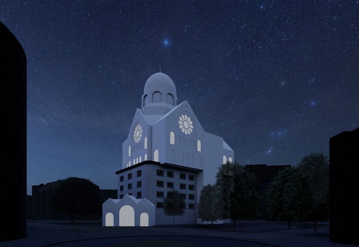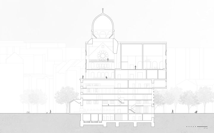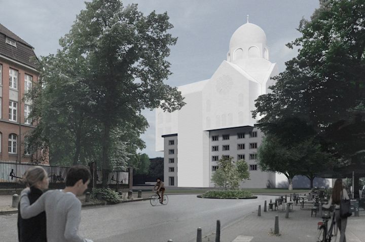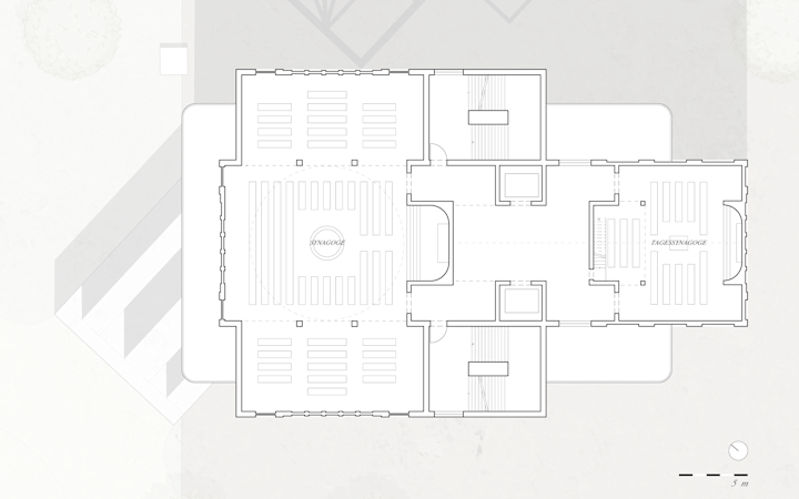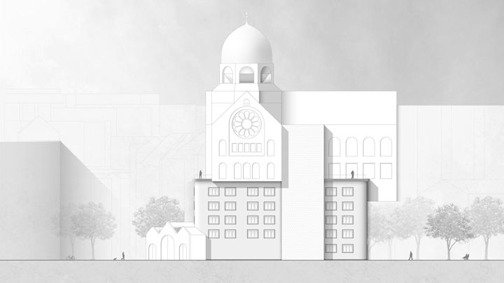 Im Spannungsfeld zwischen Alt und Neu, Generationen und Erinnerungen, dem Bedürfnis nach Schutz und dem neuen Selbstverständnis der jüdischen Gemeinde in Hamburg soll sich der Entwurf einer neuen Bornplatzsynagoge in Form einer Transformation und Aufstockung des ehemaligen Hochbunkers annähern. Die ursprüngliche Form der zerstörten Synagoge sichtbar zitierend, sollen so Synergien aus der Verschmelzung von Bestand und Neubau gewonnen werden. Zu den aktuellen Raumerfordernissen der Gemeinde passend, werden Orte der Begegnung, Geborgenheit und Sicherheit hergestellt. Auf deren Haupt nimmt ein über den Dächern Hamburgs sichtbar neuer spiritueller Raum des Judentums seinen ursprünglichen Charakter im Grindelviertel wieder ein und definiert diesen neu.