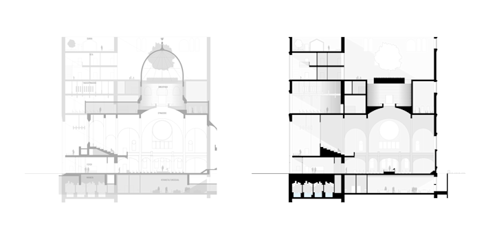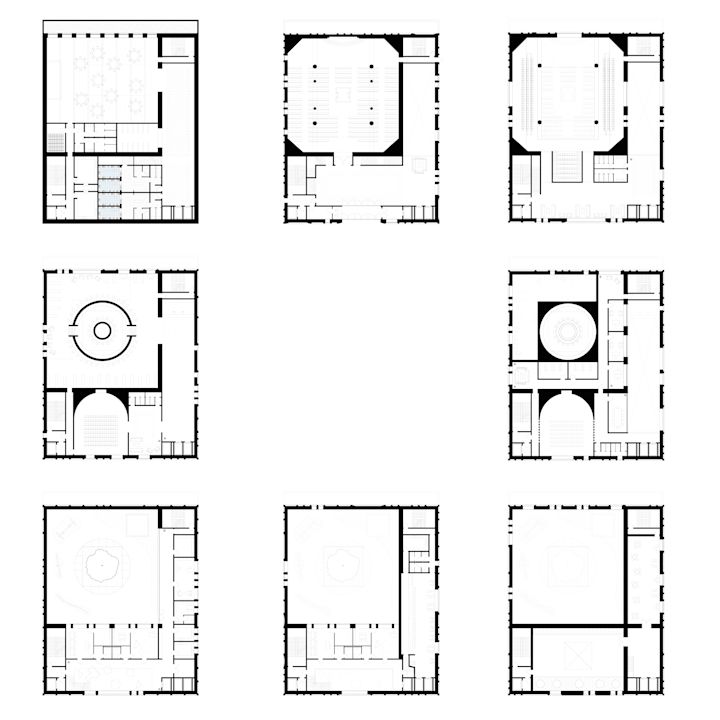 Auf dem Ort des historischen Gebetsraums entsteht ein neuer, an der Architektur des alten angelegter, Raum. Die Komplexität der alten Formen wurde in moderner schlichter Materialität gedacht und gibt der jüdischen Gemeinde eine dem historisch verwandt wirkende Architektur.